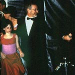 式も終わり、スターたちが街へ繰り出し始めた。もうすぐだ…。でも、待てど暮らせど…来た!ポーラ・アブドゥルだ。なんと、柵を越えてサインに応じてくれた。そして、クリストファー・ロイド、ショーン・ヤング(彼女も柵を越えてサインをしてくれた。いい人だ。ちょっと厚塗り気味だったけど、綺麗だったよ)、ヴァル・キルマー…受賞作に関係ない人たちが続々と会場入りする。と、娘の手を引いてスピルバーグが来た!あっ、ミーナ・スヴァリ。ソーラ・バーチ。ピーター・ギャラガーと、アメリカン・ビューティーの面々が到着。そして!!ケビン・スペイシーだ~!!!2つ目のオスカーを高々と掲げ、悠々と、上機嫌で現れた。笑顔もピカイチなら、取り巻きの数もスゴイ!