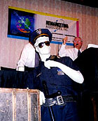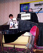 6月8~12日、ユニバーサルスタジオの真向かいにある「ヒルトンホテル・ユニバーサルシテメvで、映画のポスターや大道具、小道具のオークションが行われた。会場はすごい人と思いきや、11日(日)の午後でさえも、わずか30人ほどの人手。と言うのも、このオークション、インターネットでも参加できるからだ。「今までで1番大きいインターネット・オークションさ」と、今オークションを取り仕切るリマーケティング・アソシエイツのトッドは自慢げに言う。彼によると「今、現在も30カ国から2000人以上の人が参加している」そうで、日本からの参加者もいるそうだ。(11日午後2時半現在)