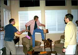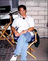 ハリウッドフリーウェイをL.A.ダウンタウンから約1時間北へ上がった、閑静でちょっとリッチな住宅街の中にある一軒家でロケは行われていた。ロケ用住宅に登録していた家の住人は、撮影期間は家を空ける。ちなみに住宅の使用料はかなり高額だそうで、登録者(家)は結構な数に上るという。ロケハン担当者が選んだ数軒を、クルーと一緒に廻り、ここに決めたのだそうだ。 |