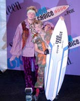 | 8月12日(日)、ユニバーサルスタジオ・ハリウッド内にあるアンフィシアターで、「ティーン・チョイス賞」授賞式が行われた。雑誌セブンティーンの読者によって選ばれる同賞は、まさに若者(主にコギャル)の人気投票。3回目を迎える今年も、受賞者はアイドルや若手俳優といったホットなセレブが中心だった。 |