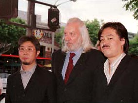 写真右から、共同監督の榊原幹典氏、キャストのドナルド・サザーランド、 坂口監督(ロサンゼルスで行われたプレミアにて) |