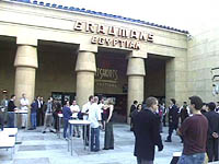 | エジプシャン・シアターでの取材を終え、帰り際にふとチャイニーズ・シアターを見ると、次の日16日の深夜0時より公開となる『スター・ウォーズ エピソード2/クローンの攻撃』(02)を見るために並ぶ人々の列が目に入った。“ショートショート フィルムフェスティバル”からも近い将来、こんな行列のできる映画を製作する監督が出現するんだろうなと思いつつ家路についた。まー、その監督が僕であることを密かに願っていたりもするのだが…。(笑) |