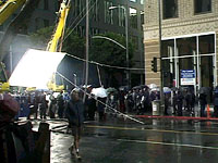 ロサンゼルス、それは世界で最も多くの映画を製作し発信する都市である。ここに住んでいると映画を撮影している現場に出くわすことはしょっちゅうだ。しかし、ハリウッド特有の徹底した秘密主義により、その撮影が誰の出演する何の映画なのか知ることは極めて難しい。もちろん、ロケ現場の写真を撮ることなどもってのほかだ。 |