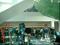 ロスアンジェルス市内から南へフリーウエイ5番を走らせる事30分(渋滞がなければ)アナハイムという街がある。日本の皆様にはディズニーランドがあるということでも知られているが、最近は日本人選手の活躍ぶりがめざましい大リーグ球場アナハイム・スタジアムある所だ。野球ファンでないあなたでも長谷川選手の所属していた、アナハイム・エンジェルスという名前に聞き覚えがあるだろう。今回はハリウッドから遠く離れた街、アナハイムのコンベンンション・センターで行われた映画撮影をレポートする。 |