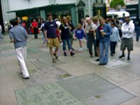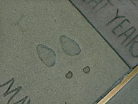 ロサンゼルスに旅行に来る人は、必ずと言っていいほど訪れるチャイニーズシアター。古くは無声映画時代のスターから、最近ではニコラス・ケイジまで、200人ものスターの足型があり、訪れる観光客は年間400万人を下らないという。 |