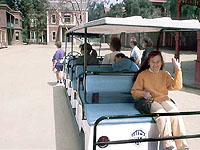 ハリウッドには、観光客に内部を見学させてくれるスタジオが多い。なかでも有名なのがユニバーサル・スタジオ。といっても、これはアミューズメントパークのアトラクションとしての公開。トラムと呼ばれるアトラクション用の車(写真参照)で色々なスタジオやセットに行くことができるが、これはいわば観光客用にセットアップされたもの。本当の映画はその向こうに立ち並んでいる倉庫のようなスタジオの中で制作されているのだが、一般の人間が立ち入ることはなかなか難しい。