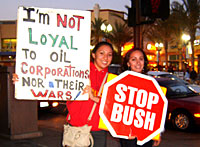 | 「石油利権、戦争反対!」ロス市民が起こした反ブッシュデモにて。 |