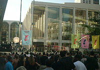 | 当日、TVショーのオンエアは8時からスタートだが、リンカーンセンター前で6時から行われたショーン“P Diddy”コムズ、イブ、シティ・ハイらのプレショーとレッド・カーペットを通るセレブ目当てのMTVファンが、早い時間から周囲の沿道を埋め尽くした。 |