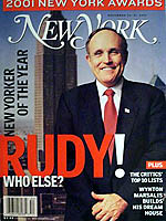 まず今年の顔として「ニューヨーカー」の最後の表紙を飾り話題になっているのはニューヨーク市長ルディ・ジュリアーニ。9月11日のWTCテロ事件以来、その冷静にして疲れをみせない働きぶりが注目され一挙に株が急騰。見事に2001年度ニューヨーカー・オブ・ザ・イヤーの座を獲得した。