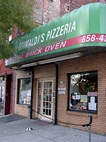 街角のいたるところにピザ屋があるニューヨークの中でもグリマルディズは一流のピッツァリア。ピザはすべてオーダーされた後かまどで焼かれるのはもちろんのこと、ピザ屋のおなじみデリバリーはもってのほか、一切れ売りも絶対にしない。赤と白のチェックのテーブルクロスに白い塗壁とくればありがちなピッツァリアスタイルだが、店内を飾るセレブの写真がこの店の人気を裏付ける。