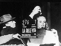 60年代のファッショナブルでグロテスク、虚実ない混ぜのイタリアを、ゴシップ新聞の記者(M・マストロヤンニ)を通して描き出す。パパラッチという言葉を英語圏に定着させたほど強いインパクトを持った作品。トレヴィの泉での戯れは映画史に残る名シーンとなった。 |